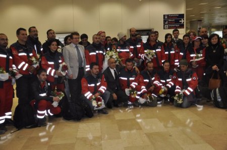 THY’ye ait bir uçakla, akşam saatlerinde İstanbul'a dönen UMKE personeli, Atatürk Havalimanı'nda İstanbul İl Sağlık Müdürü Prof. Dr. Ali İhsan Dokucu tarafından çiçeklerle karşılandı. UMKE personeline hitaben konuşma yapan Dokucu, "10 gün içerisinde bunun büyük bir fedakârlık olduğunu gördük. Sizin yaptıklarınızın karşılığını birkaç tane çiçek parçasıyla veremeyeceğimizi de biliyoruz" dedikten sonra, gözyaşlarına hâkim olamadı.