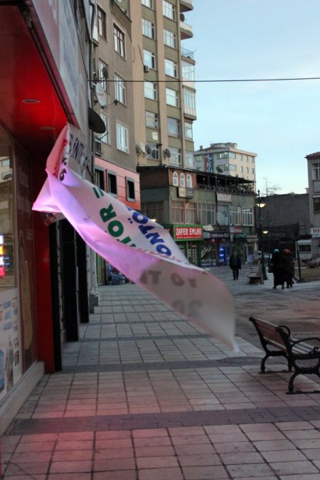 Kayseri’de akşam saatlerinde başlayan şiddetli rüzgar, vatandaşları zor durumda bırakırken, bazı işyerlerinin tabelaları düştü ve yaralanmalar meydana geldi.