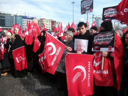Saadet Partisi üyesi yaklaşık 500 kişilik grup yıldönümünde 28 Şubat darbesini protesto etmek için Taksim Meydanı’nda toplandı. Kapatılan Milli Nizam Partisi, Milli Selamet Partisi, Refah Partisi, Fazilet Partisi ile Saadet Partisi bayrakları ile 29 Şubat günü yayınlanan gazete manşetlerinin bulunduğu dövizler taşıyan grup, ‘Hocaya sadakat şerefimizdir’, ‘Mücahit Erbakan’ , ‘Efsane başbakan Mücahit Erbakan’ şeklinde sloganlar attı. Grup adına basın açıklamasını İl Başkanı Selman Esmerer yaptı. Millet iradesine son müdahalenin üzerinden tam 15 yıl geçtiğini hatırlatan Esmerer, “Türkiye Cumhuriyeti tarihinin en başarılı hükümeti olan 54. hükümete karşı yürütülen dış destekli çirkin kampanyalar, bu milletin tarihine kara bir leke olarak eklenmiştir.” dedi.