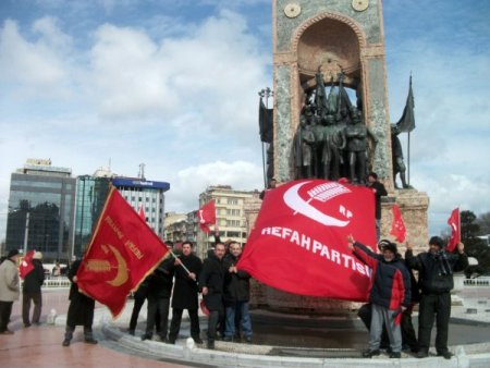 Saadet Partisi İstanbul il teşkilatı, yıldönümünde 28 Şubat’ı Taksim’de protesto etti. Kapatılan Milli Nizam Partisi, Milli Selamet Partisi, Refah Partisi, Fazilet Partisi bayraklarını taşıyan grup basın açıklamalarının ardından Cumhuriyet anıtı önünde de Refah Partisi bayraklarıyla hatıra fotoğrafı çektirdi.