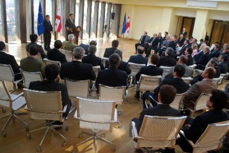 Gürcü lider en zor günlerinde hep eğitim gönüllülerini yanlarında bulduklarını aktardı. Saakaşvili, "Savaş zamanında evsiz kalan vatandaşlarımıza müesseselerinizin kapılarını açtınız. 800 insanın her türlü ihtiyacını giderdiniz. Sadece savaş zamanı değil, diğer zamanlarda da yardımlarınızı hiç esirgemediniz. Ben Gürcistan için yaptıklarınızdan dolayı dünyada sadece Gürcistan'da bulunan en kaliteli altından yapılan Üstün Hizmet Madalyasını size takdim etmek istiyorum." dedi.