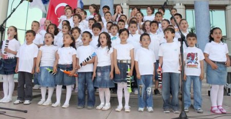 Kültür gecesi, koronun coşkuyla söylediği şarkılarla başladı. Anne ve babalarının çocukluk dönemine ait şarkıları seçen öğrencilere, zaman zaman veliler de eşlik etti.