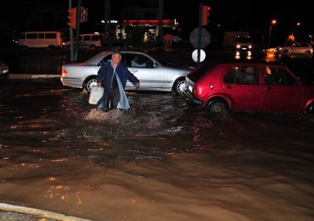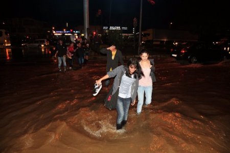Antalya’da bugün sabah saatlerinde başlayıp akşam şiddetini artıran sağanak yağış hayatı olumsuz etkiledi. Çok sayıda ev ve iş yerini su basarken Aksu ilçesi EXPO kavşağı da göle döndü. Sağanak yağış nedeniyle trafiğe tamamen kapanan kavşakta vatandaşlar araçlarıyla birlikte mahsur kaldı. Bazı vatandaşlar araçlarını göle dönen yola bırakıp korunaklı alanlarda beklemeye başladı. Kilometrelerce araç kuyruğu yüzünden uzun süre yolda bekleyen vatandaşlar zaman zaman birbirleriyle tartıştı. Vatandaşların haber vermesi üzerine kavşağa gelen kepçe su içerisinde mahsur kalan araçları kurtardı.