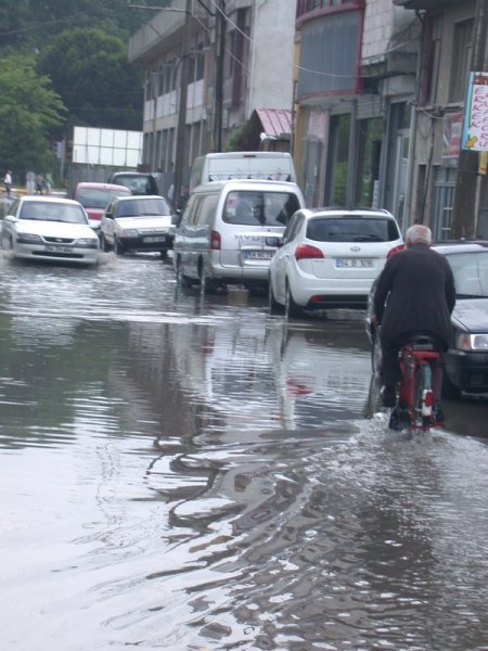 Sakarya’da yaz yağmuru etkili oldu. 10 dakika süren şiddetli yağış bazı cadde ve sokakları göle çevirdi. Biriken sular yaya ve araç sürücülerine zor anlar yaşattı. Araçlar su basan sokaklarda güçlükle ilerledi. Yayalarda yürümekte zorlandı. Sakarya Su ve Kanalizasyon İdaresi (SASKİ) ekipleri yağıştan sonra biriken suların tahliyesi için büyük çaba harcadı.
