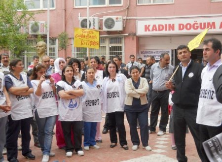 Batman’da, iş bırakma eylemi kapsamında hastane bahçesinde toplanan sağlık çalışanlarının, yarın da iş bırakma eylemini sürdüreceği, yatan ve acil hastalar dışında hizmet verilmeyeceği bildirildi.