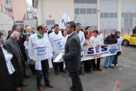“Sağlık hizmetleri piyasalaştırılarak, hastalar ‘müşteriye’, sağlık çalışanları ise bu piyasacı mantığın düşük ücretle, güvencesiz, uzun süreli, acımasızca çalıştırılan ‘elemanlarına’ dönüştürülmek istenmektedir. Dolayısı ile sağlık hakkına yönelik saldırılara karşı durmak, sadece sağlık emekçilerinin değil, sağlık hizmetinden faydalanan tüm vatandaşlarımızın görevidir. Sağlık çalışanları uzun süredir giderek artan oranda, gerçek anlamda sağlık hizmeti sunmak yerine, sadece ve sadece hastalarına ‘bakmaya’ zorlanan koşullarda hizmet üretmeye devam etmektedirler. Yıllarca yürütülen mücadeleler sonucunda kazanılmış haklarımızı ‘torbalayarak’ gasp edenler torbalarıyla da yetinmeyip, olağanüstü hal koşullarında istenen Kanun Hükmünde Kararname çıkarma yetkisini isteyen AKP, kazanımlarımızı hepten bitirmeye hazırlanıyor. Bütün bunlara dur denmek için; erişilebilir, ücretsiz, katkısız, parasız sağlık hizmeti için iş bırakıyoruz.” dedi.