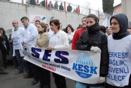 Zonguldak’ın Ereğli ilçesinde Sağlık ve Sosyal Hizmet Emekçileri Sendikası (SES) üyesi doktor ve sağlık görevlileri iş bırakma eylemi yaptı. Sendika yetkilisi Zeki İbik, hükümete sundukları taleplerin kabul edilmemesi nedeni ile bu eylemi yaptıklarını söyledi.