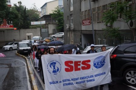 SES üyesi sağlık çalışanları, İstanbul Üniversitesi İstanbul Tıp Fakültesi Hastanesi ile İstanbul Üniversitesi Cerrahpaşa Tıp Fakültesi Hastanesi’nde iş bırakma eylemi yaptı. Hükümetin memurlar için önerdiği zam teklifini yeterli görmeyen sağlıkçılar, saat 08.00 sıralarında hastane kampüslarında toplandı. Mesailerine iki saat geç başlayan sağlıkçılar, kampüsta yürüyüş gerçekleştirdi. ‘Doğalgaza değil emekçiye zam’, ‘Performanslar eşit dağıtılsın’ ve ‘Eşitlik, adalet istiyoruz’ şeklinde slogan atan grup, hastane bahçesinde basın açıklaması yaptı.