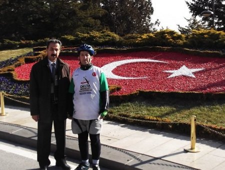 "Sağlıklı Yaşam Sağlıklı Çevre için Türkiye Turu" projesi kapsamında bisikletiyle Anadolu'yu gezen Cemal Azmi Başkaptan, Ankara'da mola verdi.