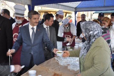 Gaziantep'te Şahinbey Belediye Başkanı Mehmet Tahmazoğlu, vatandaşlara aşure ikramında bulundu.