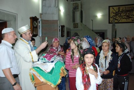 Cami kapısı önünde toplanan kadınlar ise erkeklerin camiden çıkmasını bekledi. Sakal-ı Şerif, daha sonra kadınların ziyaretine açıldı. Vatandaşlar, Sakal-ı Şerif'ini öpebilmek ve dokunabilmek için adeta birbirleriyle yarışırken, Keşan Müftüsü Süleyman Yeniçeri ve cami görevlileri izdiham yaşanmaması için sık sık cemaati uyardı. Bazı ziyaretçiler ise Sakal-ı Şerif’i cep telefonuna çekti.