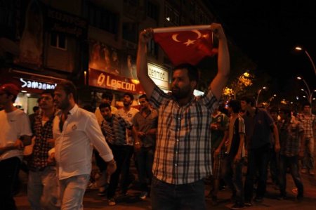 İnternetteki sosyal paylaşım siteleri üzerinden örgütlenerek Kent Meydanı'nda toplanan 200 kişilik bir grup, Dar Sokak'tan Çark Caddesinin sonuna kadar kadar yürüdü. Ellerinde Türk bayraklarıyla 'Ne mutlu Türküm diyene', 'Şehitler ölmez vatan bölünmez', 'Sakarya uyuma şehidine sahip çık' şeklinde slogan atarak yürüyen gruba vatandaşlar da alkışlarla destek verdi.