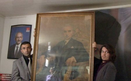 CHP Eyüp İlçe Başkanı'nın odasında asılı olan ve değerinin 6 milyon TL olduğu öne sürülen İsmet İnönü portresiyle ilgili CHP İstanbul İl Başkanı Oğuz Kaan Salıcı, basın açıklaması yaptı. Eyüp ilçe binasında düzenlenen basın toplantısına CHP ilçe yöneticileri de katıldı.