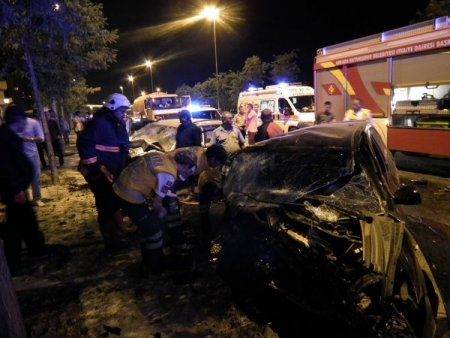 Saltoğlu Bulvarı'nda ilerleyen 06 BA 3726 plakalı araç, aşırı hız nedeniyle virajı alamayarak Minesera Alışveriş Merkezi yakınlarında karşıdan gelen 06 BD 7412 plakalı otomobile çarptı. Kaza nedeniyle olay yerine hemen acil servis ve polis ekipleri çağrıldı. Olay yerine gelen acil servis ekipleri sıkışan 06 BA 3726 plakalı aracın sürücüsünü kurtarmak için olay yerine itfaiye ekipleri istedi. Diğer araçta bulunan üç kişi ise ambulanslarla Atatürk Eğitim ve Araştırma Hastanesi'ne kaldırılarak tedavi altına alındı.