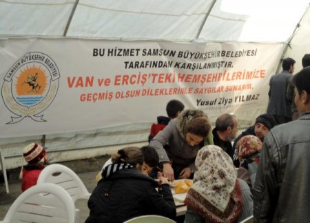 Van'da depreminin yaralarının kısa sürede sarılması için bölgeye yönelik yardımlar devam ederken, yerel yönetimler de acil ihtiyaçları gidermek için seferber oldu. Depremin hemen ardından Samsun Büyükşehir Belediyesi, ildeki bir yemek fabrikası ile anlaşarak, her gün bin kişiye sıcak yemek dağıtmaya başladı. Ayrıca ısınmaya yönelik bir kamyon katalitik, odun ve kömür sobası gönderen belediye, giyecek yardımlarını da yola çıkarmaya hazırlanıyor.