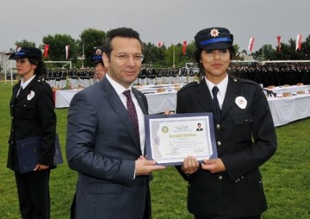 Konuşmaların ardından öğrenciler hep birlikte yemin ederek, polisliğe ilk adımlarını attı. Yemin edilmesinin ardından okulu ilk 10 içerisinde bitiren öğrenciler, diplomaları verilmek üzere kürsü önüne çağrıldı. Diploma almaya gelen ve okul üçüncüsü olarak dereceye giren Funda Efe’nin heyecandan baygınlık geçirmesi arkadaşlarını korkuttu. Baygınlık geçiren öğrenci sağlık ekiplerinin yardımıyla tekrar ayağa kalkarak Vali Hüseyin Aksoy'un elinden diplomasını aldı.