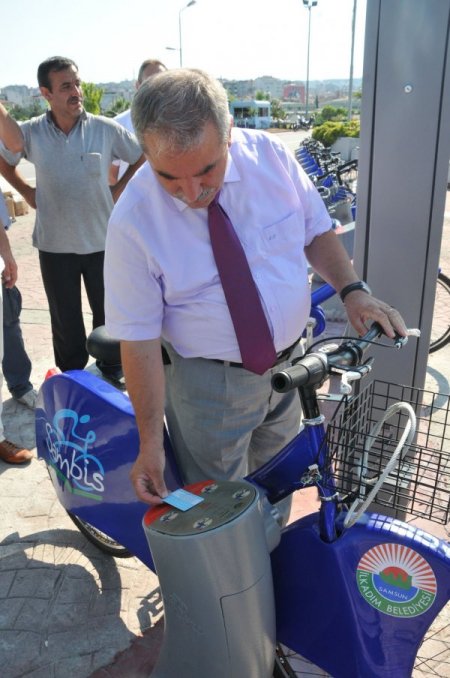 Samsun’un İlkadım Belediyesi, sağlıklı yaşama destek vermek için engelli ve yaşlı vatandaşlar için bisiklet uygulaması başlattı. Temmuz ayı sonunda başlayacak Akıllı Bisiklet Kiralama Sistemi (SAMBİS) uygulaması sahil yolundaki terminalden başlayacak. Terminale konuşlandırılan bisikletlerin testini yapan İlkadım Belediye Başkanı Necattin Demirtaş, proje ile bisiklet kullanımının yaygınlaşacağını söyledi.