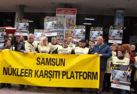 Büyükşehir Belediyesi önünde toplanan Samsun Nükleer Karşıtı Platformu üyeleri, yürüyerek Fatih Sultan Mehmet ve Mecidiye caddelerinde vatandaşlara ’30 Yıllık Enerji, 3 Bin Yıllık Kirlilik’ başlıklı bildirileri dağıttı. Konak Sineması önünde ise az sayıdaki platform üyesi, pankart açtı.