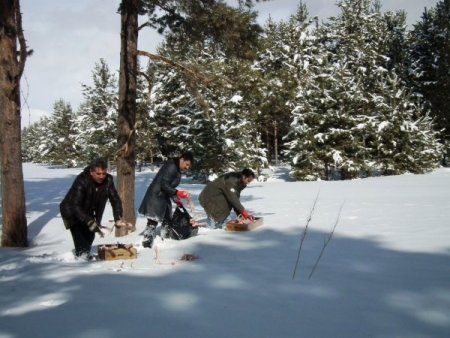 Ekipler, kar kalınlığının 1.5 metreyi aştığı 2 bin 500 rakımlı Düz Meşe, Mescitli ormanlık alanı ile Şırşır Deresi ve Keklik Deresi mevkiine yaklaşık 200 kilogram et, kemik, sakatat ile 200 kilogram buğday bıraktı.