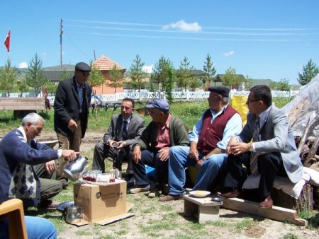 Sivas’ın Şarkışla ilçesine bağlı üç köyde incelemelerde bulunan Şarkışla Kaymakamı Abdullah Uçgun, Orta Topaç Köyü'nde Tahsin Kavak adlı bir vatandaşın evinde çay içen köyün büyükleriyle sohbet edip çay içti.