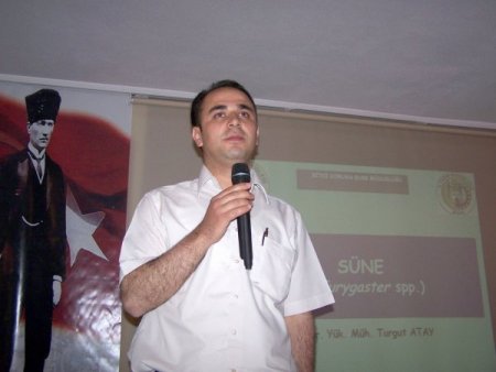 Konferansa konuşmacı olarak katılan Turgut Atay, çiftçilere hastalıkla mücadelede ne yapmaları gerektiğini slâyt eşliğinde anlattı. CİHAN