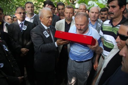 Bu arada cenazenin defnedilmesinden sonra Başbakan Recep Tayyip Erdoğan’a ait çelenkte başbakanın isminin yazılı olduğu kağıt Ahmet A. tarafından alınarak kaçırıldı. Polis Ahmet A.’yı göz altına aldı.