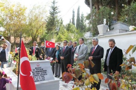 Antakya Şehitliğini ziyaret eden Hatay Valisi Mehmet Celalettin Lekesiz, Antakya Belediye Başkanı Lütfü Savaş, şehit ailelerinin acılarına ortak oldu. CİHAN
