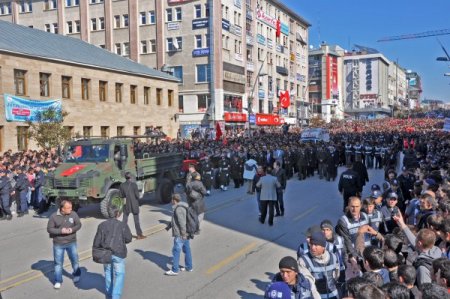 PKK'lı teröristlerin saldırısı sonucu şehit olan Mesut Kazanç'ın naaşı, Lalapaşa Camisi'nde onbinlerce vatandaşın katıldığı cenaze namazının ardından merkeze 15 kilometre uzaklıktaki Konakli köyünde gözyaşları arasında toprağa verildi.Cenaze törenine Ulaştırma Bakanı Binali Yıldırım, Erzurum Valisi Sebahattin Öztürk, AK Parti Milletvekilleri Adnan Yılmaz ve Cengiz Yavilioğlu, MHP Milletvekili Oktay Öztürk ve çok sayıda vatandaş katıldı.