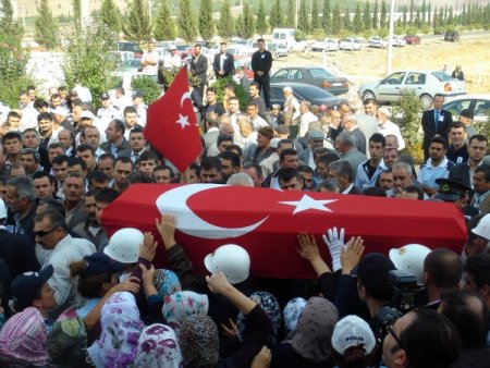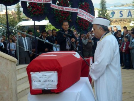 Kahramanmaraş'ın Türkoğlu ilçesinde önceki gün İskenderun'daki polis merkezine teröristlerce düzenlenen saldırıda şehit olan polis memuru Kadir Alcıoğlu, Kılılı beldesinde düzenlenen resmi törenin ardından kılılı asli mezarlıkta toprağa verildi.