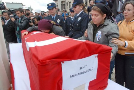 Şırnak'ın Silopi ilçesinde teröristler tarafından şehit edilen polis memuru Muharrem Ünlü (29), Çorum'un Mecitözü ilçesinde gözyaşları arasında toprağa verildi. CİHAN