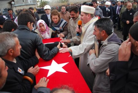 Bitlis'in Güroymak ilçesindeki saldırıda şehit düşen polis memuru Yalçın Demir (24) memleketi Ağrı'da gözyaşları ve Kürtçe ağıtlar arasında toprağa verildi.