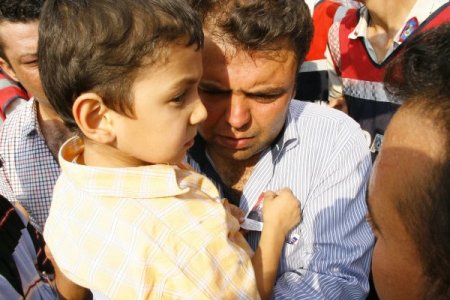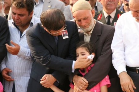 DAVUTOĞLU, ŞEHİDİN KIZININ GÖZYAŞLARINI CEBİNDEN ÇIKARDIĞI MENDİLLE SİLDİ