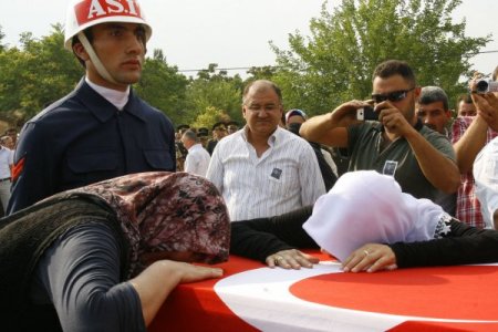 Şehit Uzman Çavuş Ramazan Sağ’ın 7 yaşındaki kızı Büşra, tören boyunca gözyaşlarını tutamadı. Büşra’nın gözyaşlarını, Dışişleri Bakanı Ahmet Davutoğlu, cebinden çıkardığı mendille sildi. Ramazan Sağ’ın eşi Tuğba, annesi Sebahat ve polis kardeşi tabuta sarılıp göz yaşı döktü. Zaman zaman fenalık geçiren şehit yakınlarına ambulansta müdahale edildi.