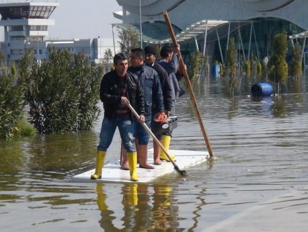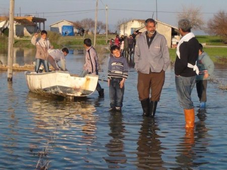 Hatay’da etkili olan sağanak yağış nedeniyle taşan Asi Nehrinin suları yakın köyleri sular altında bıraktı. Büyükler taşkından kurtabileceklerinin peşine düşerken sel suları en çok çocukları mutlu etti. Okulları su altında kaldığı için tatilin keyfini çıkaran Karabatak (Karacanlık) Köyündeki çocuklar derme çatma hazırlanan salların üzerinde oynamayı sürdürüyor.