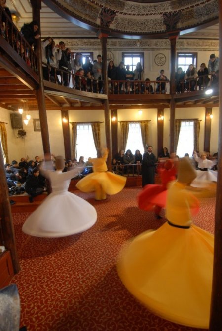Bursa'da, 'Liselerarası Mevlana Şiir Yarışması' kapsamında Karabaş-i Veli Kültür Merkezi'nde düzenlenen sema gösterisi öğrencileri mest etti.