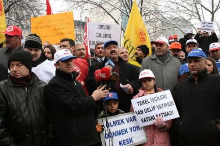 Ünlü Cadde'de toplanan sendika üyeleri, buradan sloganlar eşliğinde Orhan Gazi Parkı'na kadar yürüdü. Burada toplanan konfederasyonlar, sloganlarla Tekel işçilerine destek verdi. Ayrıca, çalınan müziklerle soğuk havada halaylar çekerek ısınmaya çalışan sendika üyeleri, açtıkları pankart, döviz ve sloganlarla hükümete tepki gösterdi. Ardından yapılan basın açıklamasında, Tekel işçilerine destek verilirken hükümetin işçileri açlık ve sefalete mahkum etmek istediği belirtildi. Burada konuşan Türk-İş 8. Bölge Temsilcisi Mehmet Kanca, Ankara'da ekmekleri için eylem yapan Tekel işçilerinin direnişin sembolü olduğun belirterek, kendilerinin de Bursa'dan destek verdiklerini söyledi. Hükümetin bütün kesimlerle kavgalı olduğunu vurgulayan Kanca, sorunların masada konuşarak çözüleceğini belirterek hükümeti erken seçime davet etti.