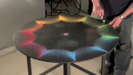 Japon müzisyen ve gösteri sanatçısı Kenichi Kanazawa, kauçuk bir aletin çelik masada çıkardığı sesler sayesinde kum taneleri ile olağanüstü desenler oluşturuyor. Ses dalgalarıyla etkileşime giren kum taneleri, birbirleriyle adeta dans ediyor.
