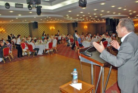 İftar yemeğinde konuşan Belediye Başkanı Azim Öztürk, temel belediyecilik hizmetlerinin ilk günkü gibi 7 gün 24 saat kesintisiz sürdüğünü belirterek, “35–40 derece sıcaklıkta asfalt dökümü yapan ekiplerimizin özverili çalışmalarını buradan bir kez daha hatırlatmak ve kendilerine teşekkürlerimi sunmak istiyorum” diye konuştu.