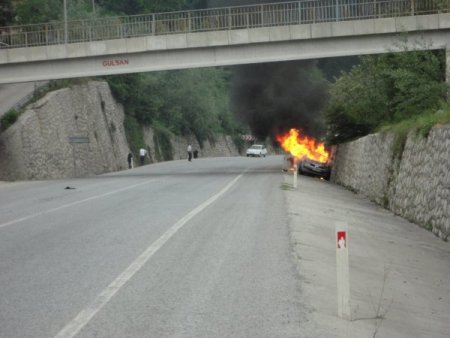 Olay, D-140 Karayolu'nda Reşadiye Köprüsü altında meydana geldi. Recep Güzel yönetimindeki 54 FP 737 plakalı otomobil, henüz belirlenemeyen bir sebeple alev aldı. Yangını fark eden sürücü aracı durdurdu. Sürücü ve araçta bulunan iki kişi, yanan otomobili terk etti. Otomobil kısa sürede alevlere teslim oldu. Yoldan geçen bir kişi, durumu itfaiyeye haber verdi. Bu sırada yanmakta olan otomobil, yokuş aşağı kaymaya başladı. Yanar halde 50 metre giderek karşı yöne geçen otomobil, istinat duvarına çarparak durdu. İtfaiye ekiplerinin müdahalesiyle söndürülen yangında, otomobil kullanılamaz hale geldi.