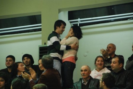 Beko Basketbol Liginin 7. haftasında Erdemirspor kendi saha ve seyirci önünde ligin güçlü ekiplerinden Türk Telekom’u konuk etti. Oldukça heyecanlı geçen maçın ilk periyodunun sona ermesinin ardından sahada büyük bir alkış sesi duyuldu. Erdemirspor’lu Kerem Öztürk, Almanya’ da yaşayan kız arkadaşı Seda Baykurt’a evlenme teklifi için ilginç bir yöntem seçti. Taraftarların açtığı “Benimle Evlenirmisin Seda” yazılı pankartı açtıran gencin kız arkadaşı Seda Baykurt, şaşkınlık içerisinde kendisine gelen teklife “EVET” dedi. Seyircilerin alkışlarıyla destek verdiği genç çift, mutluluk içerisinde maçı seyretti. CİHAN