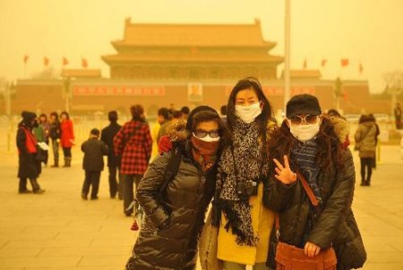 Pekin'de etkili olan kum fırtınası hayatı olumsuz etkiliyor. Pekinliler evlerinde dışıar çıkmaya çekinirken, buna cesaret edenler de yüzlerini kapatmak zorunda kalıyor. Başkenti kaplayan ince sarı toz bulutu, sokaklarda yürüyen insanların ayak izlerini arkasında bırakacak kalınlığa ulaştı.