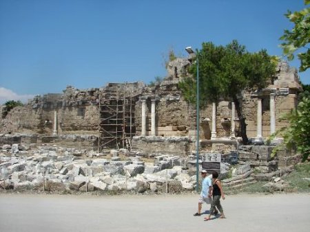 Antalya'nın Manavgat ilçesi Side Antik Kent'te Anıtsal Çeşme'de (NYMPHAEUM) bahar dönemi restorasyon çalışmaları sona erdi. İstanbul Üniversitesi Edebiyat Fakültesi Arkeoloji Bölümü tarafından 6 Nisan'da başlatılan restore çalışmalarına ilişkin bilgi veren Arkeolog Altan Algül, tarihi çeşmede alan yönetiminin Sayka İnşaat Mimarlık Mühendislik Müşavirlik Limited Şirketi tarafından Tarih Günışığına Çıkıyor (Hıstory Comes Back To Life) projesiyle uygulandığını söyledi. Altan Algül, Anadolu topraklarından ayakta kalan en görkemli Roma dönemi çeşmesinin ayağa kalması için çalışmaların 10 yıl daha sürebileceğini ifade etti. Algül, "Anıtsal Çeşme'de yılda 2 kez çalışma yapıyoruz. Bahar ve yaz döneminde. Side Antik Kent'te bulunan ve M.S. 2'nci yüzyıl ortalarında yapılan Anıtsal Çeşme Anadolu topraklarında bulunan tek en görkemli çeşmesi. İtalya Roma'da bulunan Anıtsal Çeşme'de M.S. 3'ncü yüz yılda inşa edilmiş ve model olarak Side örnek alınmıştır. NYMPHAEM'da geçen yıl 4 sütunu ayağa kaldırdık. Bu yıl ise 7 sütunu ayağa kaldırdık. Ayrıca kayıp sandığımız taşların çoğunu bulduk." dedi.