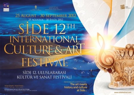 Kültür ve Turizm Bakanlığı ve Uluslararası Festivaller Birliği(EFA) desteğiyle düzenlenen Side 12. Uluslararası Kültür ve Sanat Festivali, 25 Ağustos-30 Eylül tarihleri arası gerçekleştirilecek.