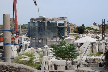 Antalya Side Antik Kent'te Tyche(Tüke) Tapınağı'nın restorasyon ve onarım çalışmasının eylül ayında sona ererek ziyarete açılacağı belirtildi.
