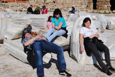 Side'de yağışlı havadan sonra güneş yüzünü gösterdi. Güneşli havayı gören turistler kaldıkları otelden çıkarak doğa yürüyüşü yaptı. Güneşli havada Apollon Tapınağı'nda toplanan Alman, İngiliz, Belçika ve Hollandalı turist tapınak bölgesindeki tarihi taşlar üzerinde uzanıp uyudu. Bazı turistlerde tarihi taşların üzerinde oturarak güneşlenmenin keyfini çıkardı. Almanya'nın Hamburg şehrinde eşi ile birlikte 20 günlüğüne tatile gelen inşaat Mühendisi Alex Mansal, güneşli havayı görünce eşi ile birlikte Apollon Tapınağı önünde uzanarak güneşlendiklerini söyledi. Almanya'da havaların çok soğuk olduğunu belirten Mansal, Side'de güneşli havada dolaşmaktan mutlu olduğunu söyledi. Mansal, "Side'de çok güzel ve güneşli hava var. Güneşli havada eşimle birlikte dolaştıktan sonra taşlar üzerine uyumayı tercih ettim. Benim ve eşim için çok güzel bir gün." diye konuştu.