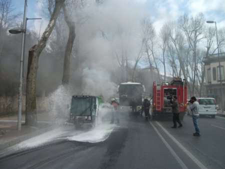 İBB'ye ait temizlik aracı, Dolmabahçe Caddesi üzerinde temizlik yaptığı sırada alev aldı. Yere atılan sigara izmaritinin çekilmesi sonucu çıktığı belirtilen yangına, ilk müdahaleyi aracın sürücüsü yaptı. Yangın söndürme tüpleriyle yapılan müdahale yetersiz kalınca, olay yerine itfaiye ekibi çağrıldı. Kısa sürede olay yerine ulaşan itfaiye ekibi, alevlere müdahale etti. Yanmanın içten devam etmesi müdahaleyi güçleştirdi. İtfaiye erleri, herhangi bir patlama ihtimaline karşı caddeyi trafiğe kapatarak, yolun her iki tarafına da emniyet şeridi çekti. Aracın içine su sıkamayan itfaiye erleri, demir makasıyla çöp haznesinin bulunduğu kısmı kesti. Uzun çabaların ardından yangının merkezine ulaşan itfaiye erleri, alevlere köpük sıkarak yangını söndürdü.