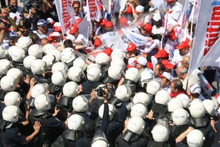 1 Mayıs Emek ve Dayanışma Günü dolayısıyla Sıhhiye’ye yürümek isteyen gruba polis biber gazıyla müdahale etti. Müdahalenin ardından bir süre oturma eylemi yapan grup, tekrar polis barikatına aşmaya çalıştı. Ekipler, grubu dağıtmak için ikinci kez göstericilere müdahale etti.