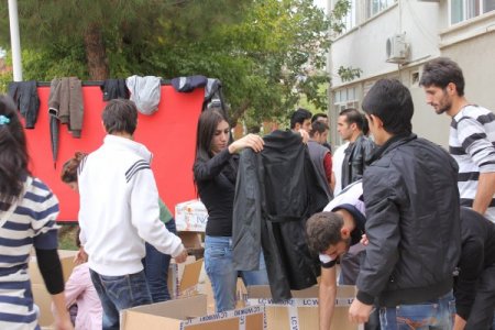 Bu arada üniversite öğrencilerin organizasyonu ile toplanan yardım malzemeleri üniversite bahçesinde tasnif edilerek kiralanan kamyona yüklendi. İçerisinde su, gıda, battaniye, giyecek gibi temel ihtiyaç malzemelerinin bulunduğu kamyon Van'a doğru yola çıktı. Gönderilen malzemelerin adaletli dağıtımını sağlamak için bir grup öğrenci de üniversitesinin araçlarıyla Van'a gitti.