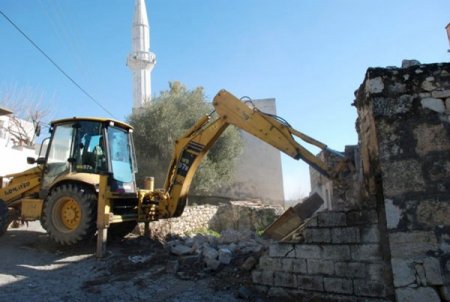 Mersin’in Silifke İlçe Belediyesi, tehlike arz eden ve çevre kirliliğine sebep olan boş ve terk edilmiş atıl binaları yıkıyor.