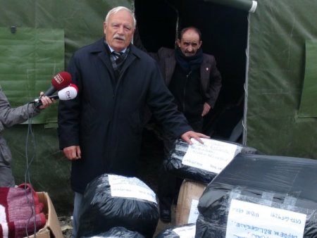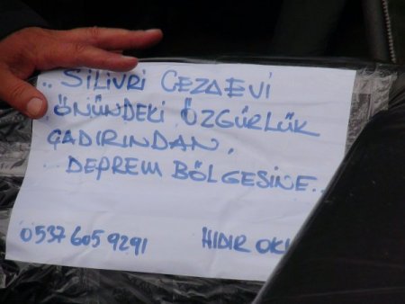 Balyoz ve Ergenekon yargılamalarının tutuksuz yapılması ve özel yetkili mahkemelerin kaldırılması amacıyla Silivri Cezaevi'nin önünde kurulan çadırlardan Van'daki depremzedelere yardım malzemesi gönderildi.